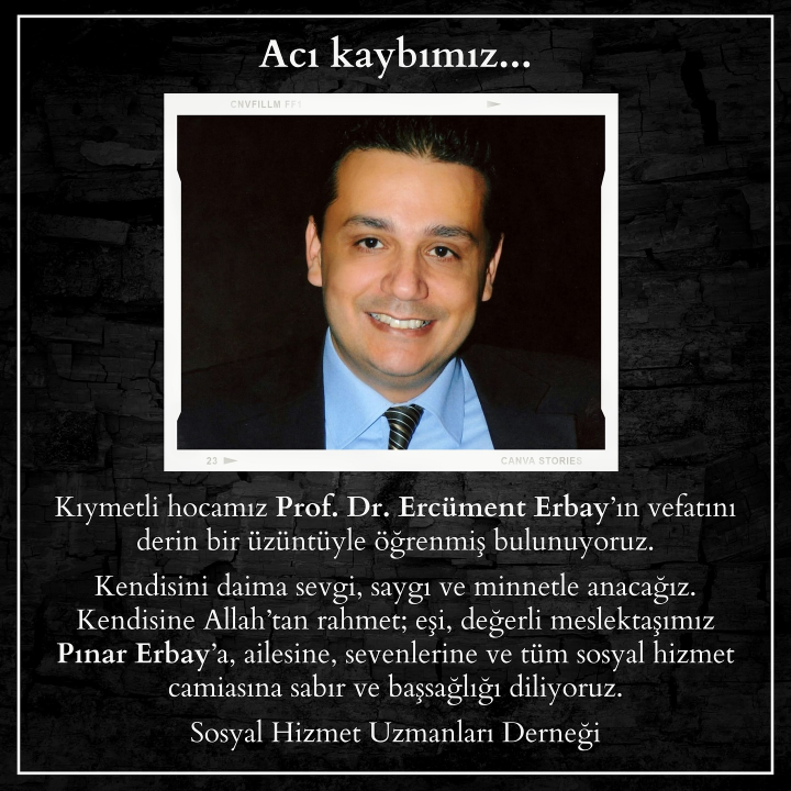 Prof. Dr. Ercüment Erbay’ın ani ölümü, sosyal hizmet camiasında büyük bir yankı uyandırdı. Sosyal Hizmet Uzmanları Derneği, resmi sosyal medya hesabından yaptığı paylaşımda şu ifadelere yer verdi: